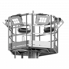 Инженерное решение предусматривает сборку высокомачтовой конструкции из нескольких секций длиной до 12 метров, которые соединяются между собой в процессе монтажа. Установка осуществляется на анкерные закладные детали, приобретаемые отдельно. Для удобства обслуживания осветительного оборудования мачта может комплектоваться лестницами и площадками отдыха, а также всей необходимой электрикой и светильниками различных типов и мощностей.